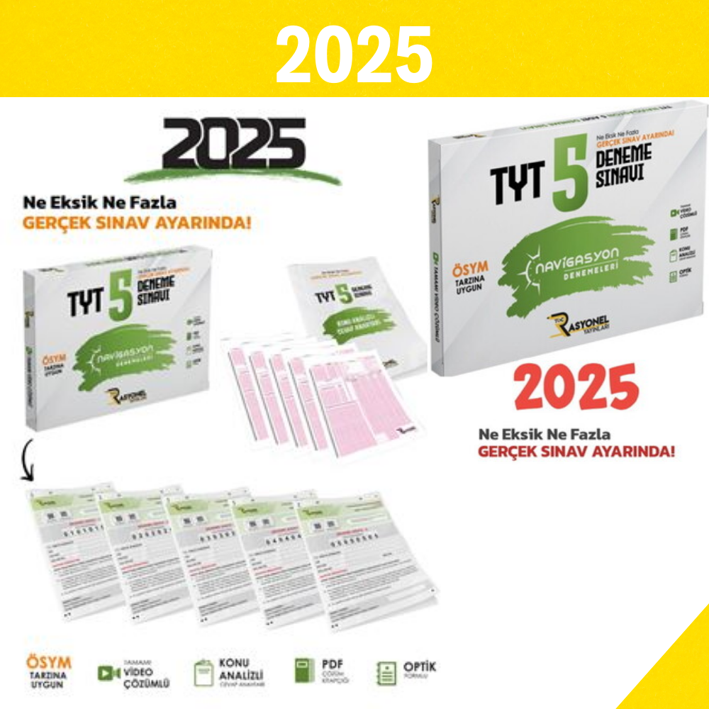 2025 TYT Tüm Dersler Navigasyon 5'li Genel Deneme Seti (ÖSYM AYARINDA) Yayınevi: Rasyonel Yayınları