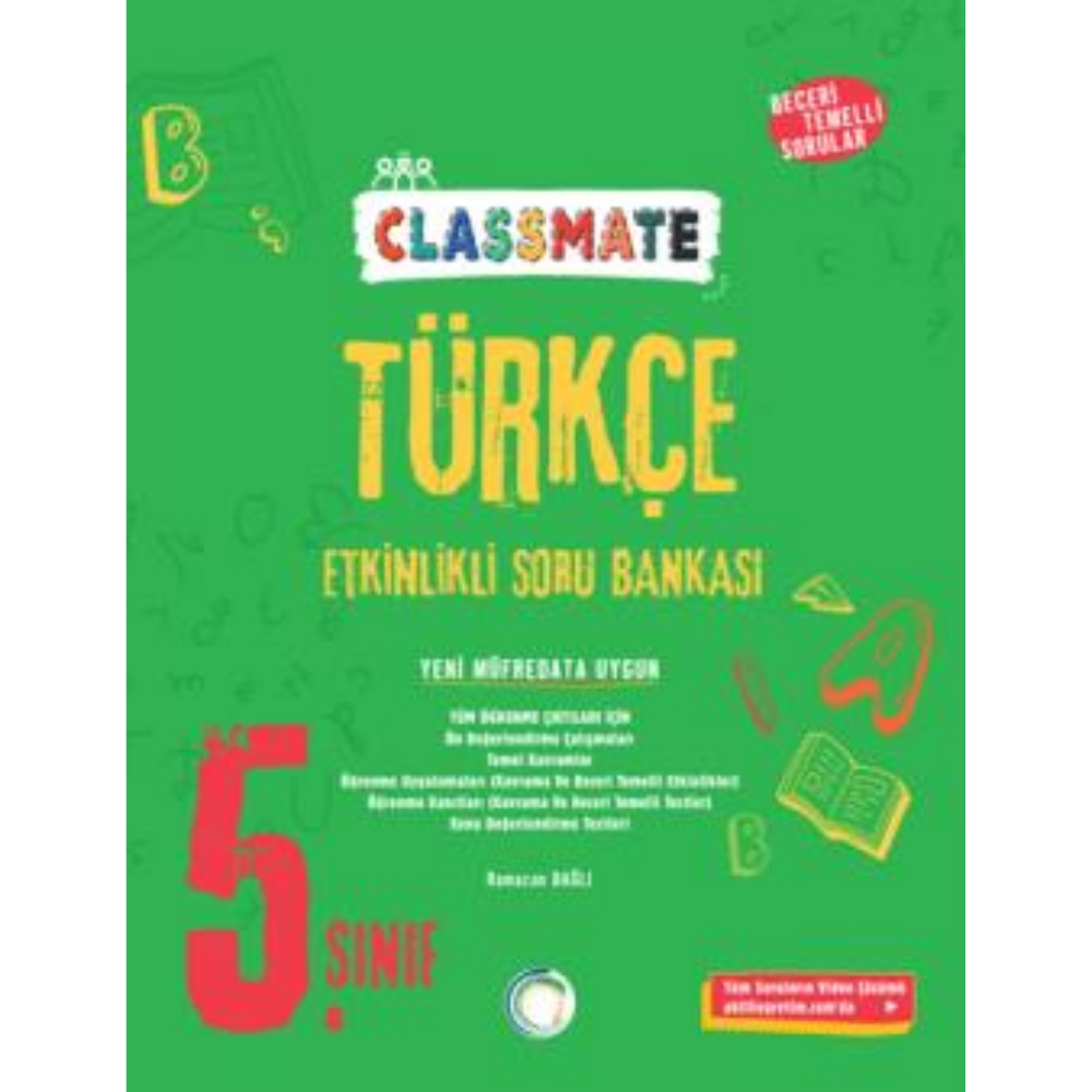 5.sınıf Classmate Türkçe Etkinlikli Soru Bankası 280 sayfadır. Soruların video çözümlerine akilliogretim.com'dan ulaşabilirsiniz.