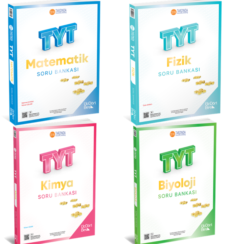 Üç Dört Beş Yayıncılık 2026 Model Tyt Matematik- Biyoloji-kimya- Fizik 4'lü Soru Bankası Seti 345